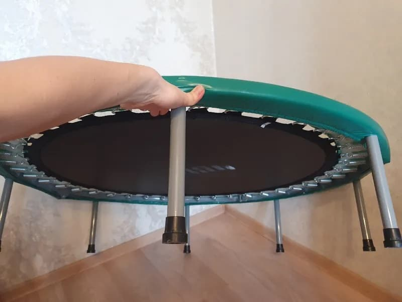 Прочная стальная рама батута из облегченного сплава имеет складную конструкцию, что позволяет сэкономить место при хранении и транспортировке.